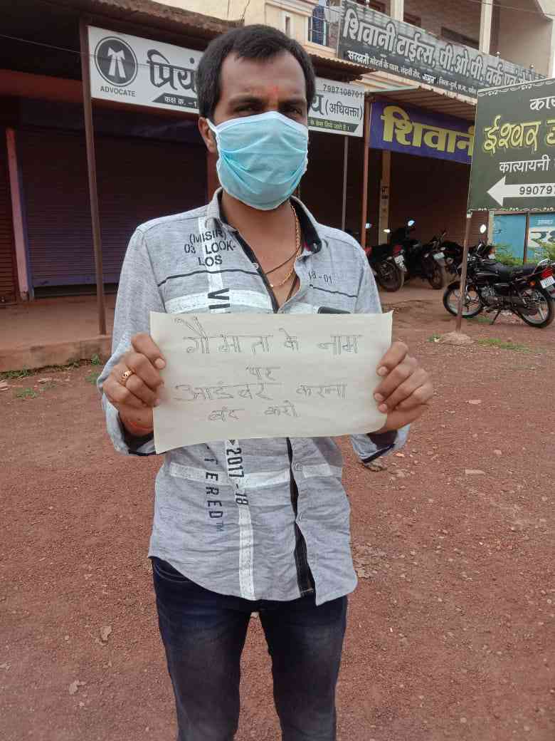 गाय की मौत के बाद युवा जनता कांग्रेस (जे) के कार्यकर्ताओं ने कांग्रेसी सरकार पर आक्रोश व्यक्त किया। दरअसल मामला बिलासपुर में हुए 50 गायों कि मौत से नाराज जोगी कांग्रेस नेता ईश्वर उपाध्याय के नेतृत्व में आक्रोशित लोगों ने सरकार के खिलाफ सोशल डिस्टेंसीग का पालन करते हुए आन्दोलन किया, साथ ही दोषियों पर कड़ी कार्रवाई की मांग राज्यपाल को ईमेल व टि्वटर के जरिए ज्ञापन सौंप कर किया। ईश्वर उपाध्याय ने कहा यह प्रदेश की पहली घटना नहीं हैं, ऐसी गंभीर घटना पुर्व में भी घटित हुई हैं पर तब भाजपा की सरकार थी और भाजपा नेता हरीश वर्मा के गौ शाला में हजारों गायों कि भुख से निर्मम हत्या हुई थी तत्कालीन भाजपा व वर्तमान कांग्रेस सरकार दोनों गौ माता के नाम पर राजनीति करते हैं पर वास्तविकता सब के सामने है मुख्यमंत्री भुपेश बघेल के गौठान एवं रोकाछेका को आईना दिखा रहे हैं,आन्दोलन में पार्षद युवराज वैष्णव, विरेन्द्र निर्मलकर, शक्ति, गौरव यादव, अमन नारंग, कुलेश्वर प्रजापती, दिनेश देवांगन आदि उपस्थित थे।