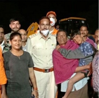 अतुल शर्माथाना गंडई के ग्राम ठंढार में दिनांक 24/8/20 को शाम करीब 4 बजे ठंढार निवासी अनिल पारधी पिता लालजी पारधी उम्र 10 वर्ष मछली पकड़ने नर्मदा नाला में गया था जहाँ नाले में चट्टान के बीच मे पैर फंसने की सूचना पर थाना गंडई पुलिस तत्काल मौके पर पहुँच कर बच्चे को रेस्क्यू करने हेतु नाले के तेज बहाव को कम करने हेतु ग्राम नर्मदा से नाले का गेट बंद करवाया गया। बच्चे को रेस्क्यू करने के लिए स्थानीय लोगो के साथ मिलकर उसे निकालने का प्रयास किया गया। जेसीबी के द्वारा भी चट्टान को हटाने का प्रयास किया गया। बच्चे की सुरक्षा के लिए प्लास्टिक बोरियों में मिट्टी भरकर बच्चे के चारो तरफ घेरा तैयार किया गया।रेस्क्यू दौरान बच्चे को स्वास्थ सुविधा हेतु चिकित्सकों की टीम भी बुलाई गई। NDRF की टीम के आने बाद थाना गंडई पुलिस एवं NDRF की संयुक्त टीम द्वारा चट्टान को तोड़कर बच्चे को रेस्क्यू किया गया। 8 घण्टो के अथक प्रयास के बाद बच्चे को सुरक्षित निकाला जा सका।