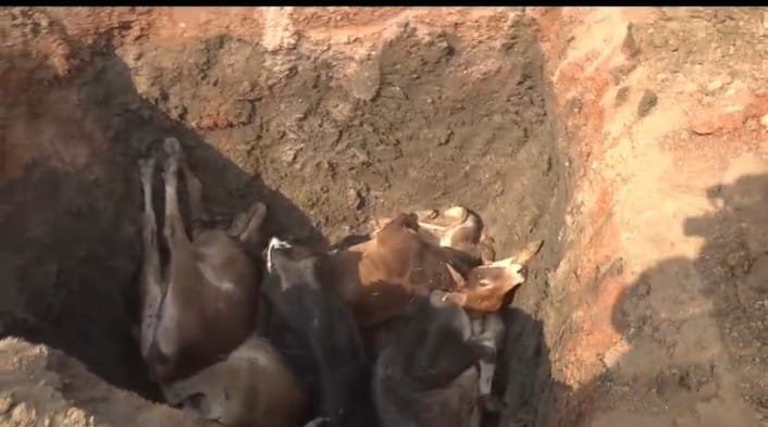 गायों की मौत का यह मामला दुर्ग जिले के गोठानों से जुड़ा है। भिलाई के सुपेला के कोसानाला और वहीं राजनांदगांव बायपास में डी-मार्ट के सामने बनाए गए गोठानों में 10 मवेशियों की मौत हो गई। इन मवेशियों की मौत भूख और प्यास से हो गई। वहीं कई मवेशियों की स्थिति बहुत खराब है। पैरा, चारा-कुट्टी की व्यवस्था नहीं होने से कई मवेशी बीमार भी है। वहीं जिला प्रशासन और गोठान समिति अब पूरे मामले पर लीपापोती करने में लगे हुए हैं।